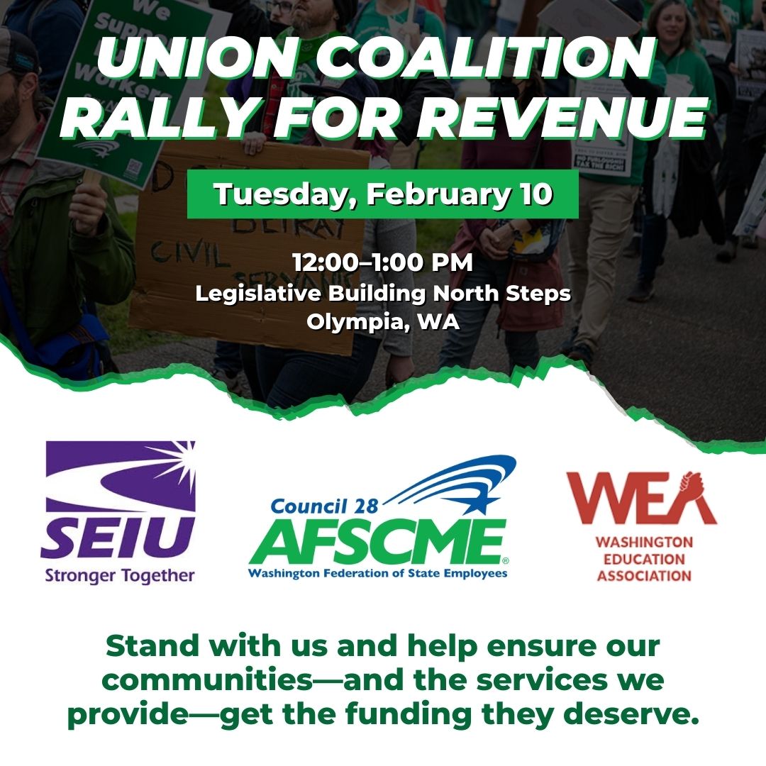 A broad coalition of unions are calling for fair, progressive revenue to protect jobs, strengthen public services, and ensure a Washington for all—not just the rich.