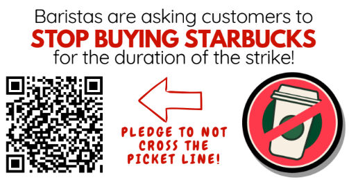 Before the picket have some fun putting together your own “No Contract No Coffee” signs, and print some fliers to hand out to customers and Starbucks workers. Then wake up on Saturday morning, put on your union gear and meet your fellow workers in Tumwater to encourage customers to boycott Starbucks and baristas to join the fight!